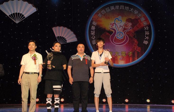 经过八个月来一轮轮精心筛选,共有25位来自两岸三地高校的大学生魔术师进入交流大会总决赛。经过紧张刺激的比拼,首都经济贸易大学朱亚男、东北大学大连艺术学院陈辉获得近景魔术比赛金奖。辽宁科技大学张泽龙、香港城市大学潘浩廷获得舞台魔术比赛金奖。来自辽宁科技大学张泽龙和辽宁建筑大学城市建设学院的陶秋晨分别获得“佛山市明霞金属制品有限公司杯”和“博爱之星杯”大奖。